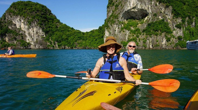 * Discover some of the treasures disseminated across the Bay of the Descending Dragon during the afternoon: fascinating caves, pristine beaches, picturesque floating villages, and fantastic rock formations rising up out of emerald water.